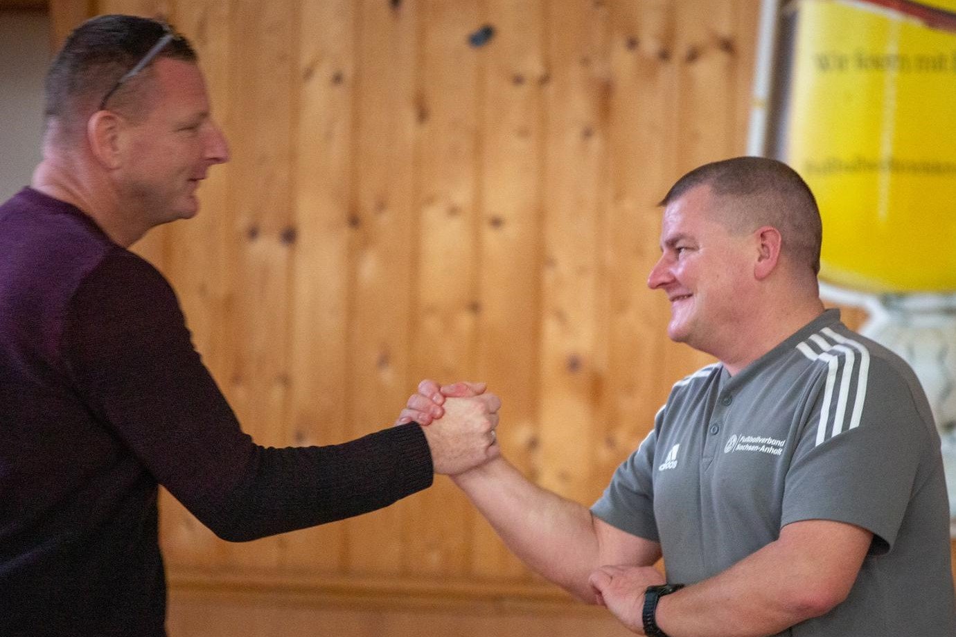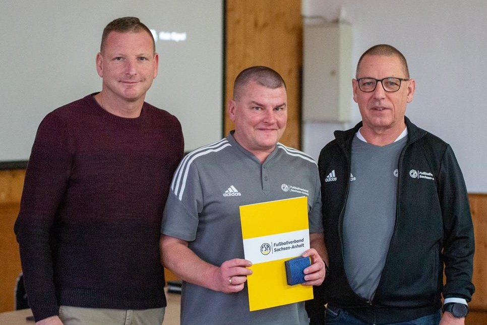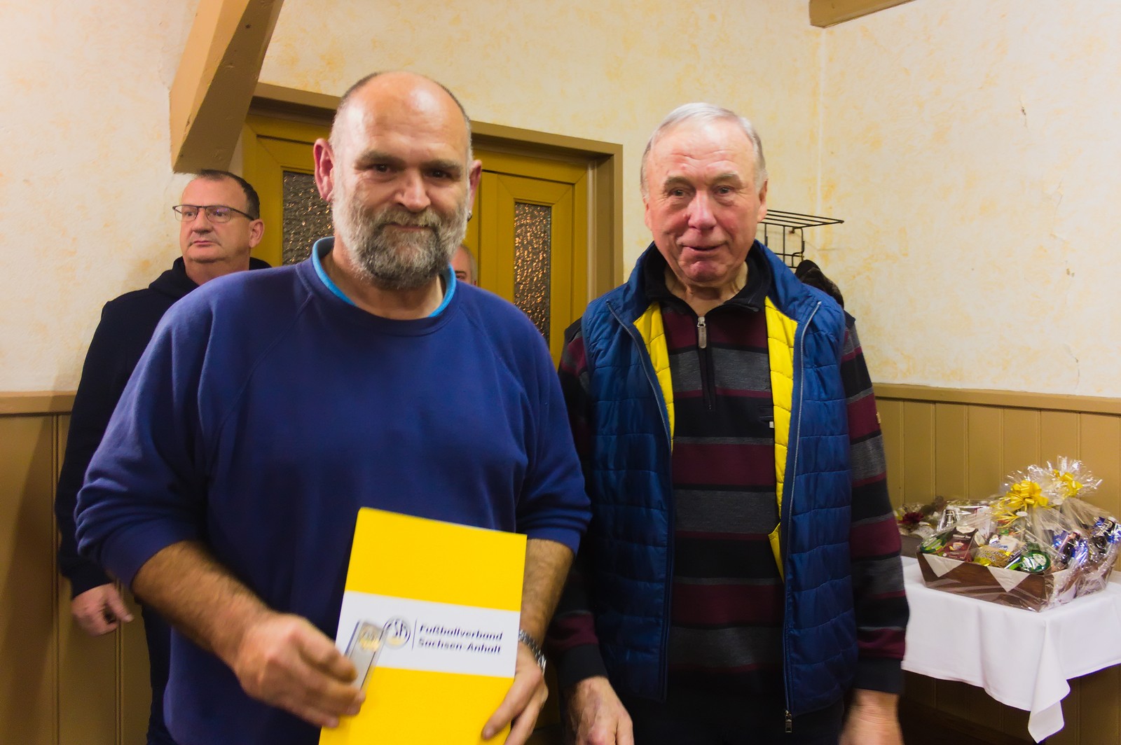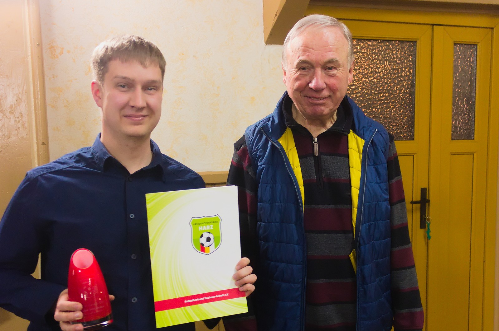 Es war schon was ganz Besonderes, als der SR-Obmann des Fußballverbandes Sachsen-Anhalt, Markus Scheibel, am Ende der Obleute-/Lehrwartetagung in Neugattersleben um Ruhe bat. Zusammen mit dem Harzer SR-Obmann Alexander Lück nahm er auf Vorschlag des Schiedsrichterausschusses und Präsidiums KFV Harz eine hochrangige Ehrung vor.