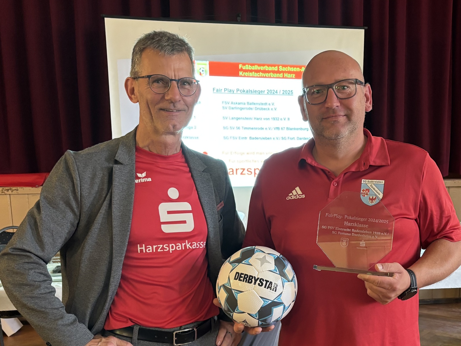 Ein besonderer Moment war die Auszeichnung der FairPlay-Sieger der Saison 2024/25. Die Pokale wurden von Frank Harbrecht, Vertreter der Harzsparkasse, überreicht, die den Wettbewerb seit Jahren als Sponsor unterstützt.